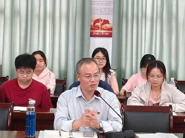 在武鸣校区地化楼B228召开2025年度党支部书记抓基层党建工作述职评议会。学院党委副书记苏学权(主持党委工作)、党委副书记、纪委书记陈今浩、各党支部书记及支委、学院党务学生助理参加会议。