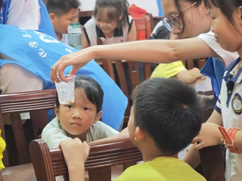 “三下乡”支教团队在合诚社区开展趣味实验与劳动教育课程,旨在让乡村孩子近距离感受科学魅力、培养实践能力,将“探索”与“成长”的活力注入孩子们的暑假生活。