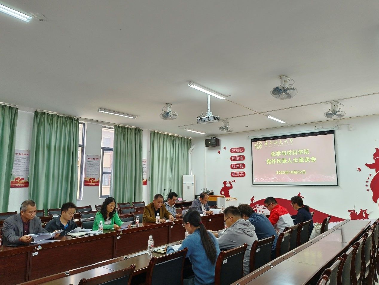 于10月22日上午在武鸣校区地化楼228会议室召开学院党外人士代表座谈会,学院党委书记陈宗武、院长苏炜、党委副书记陈今浩及学院党外人士代表参会,会议由陈宗武书记主持。