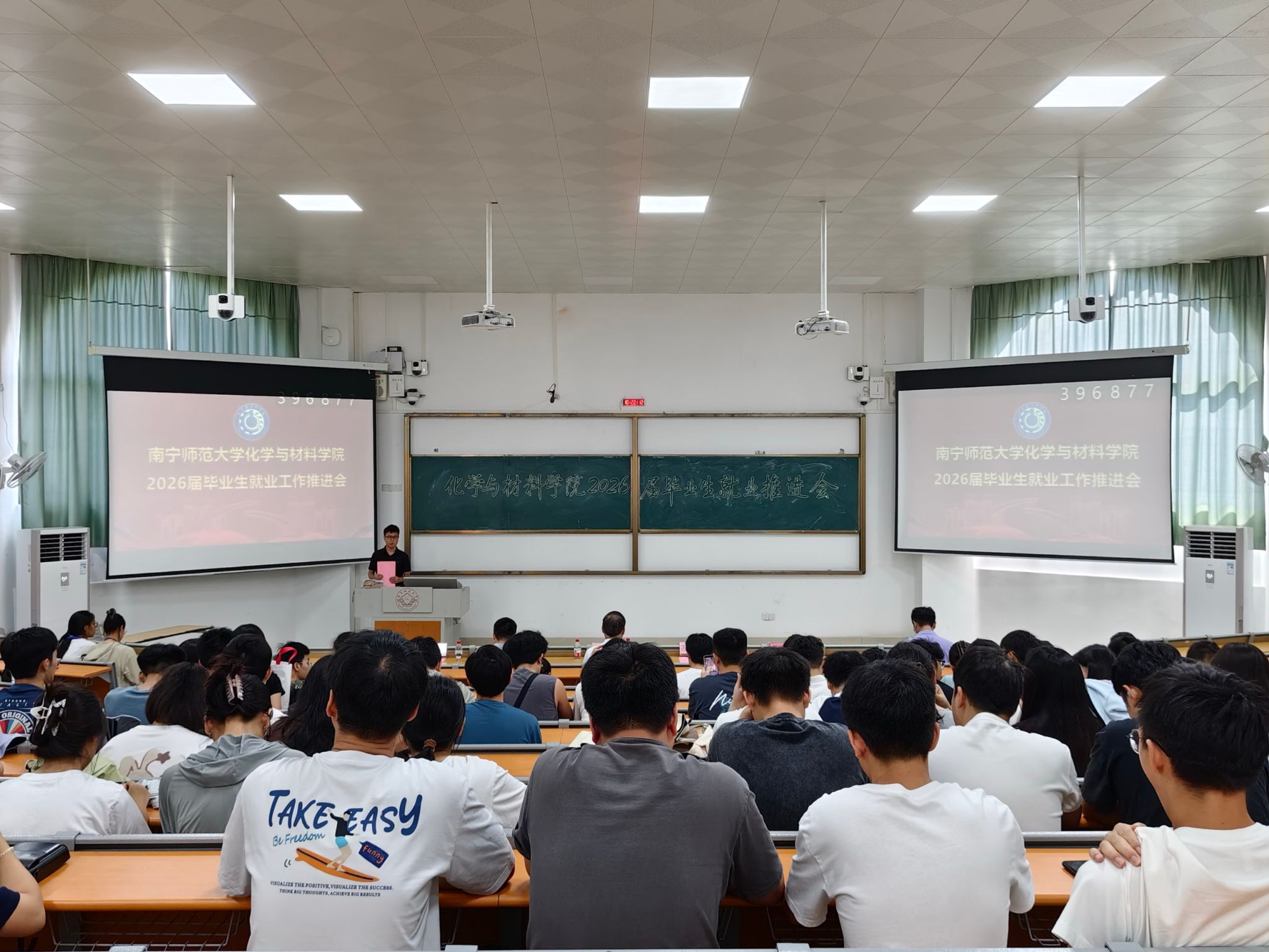 陈今浩副书记为毕业生详细解读了自治区和学校的就业创业政策,从就业创业、考研升学、考公考编三个方面为毕业生作了细致而实用的指导,并传授了简历撰写、投递、面试的方法技巧,鼓励大家积极准备,大胆出击,不断完善简历,提升面试技能,主动捕捉就业信息。