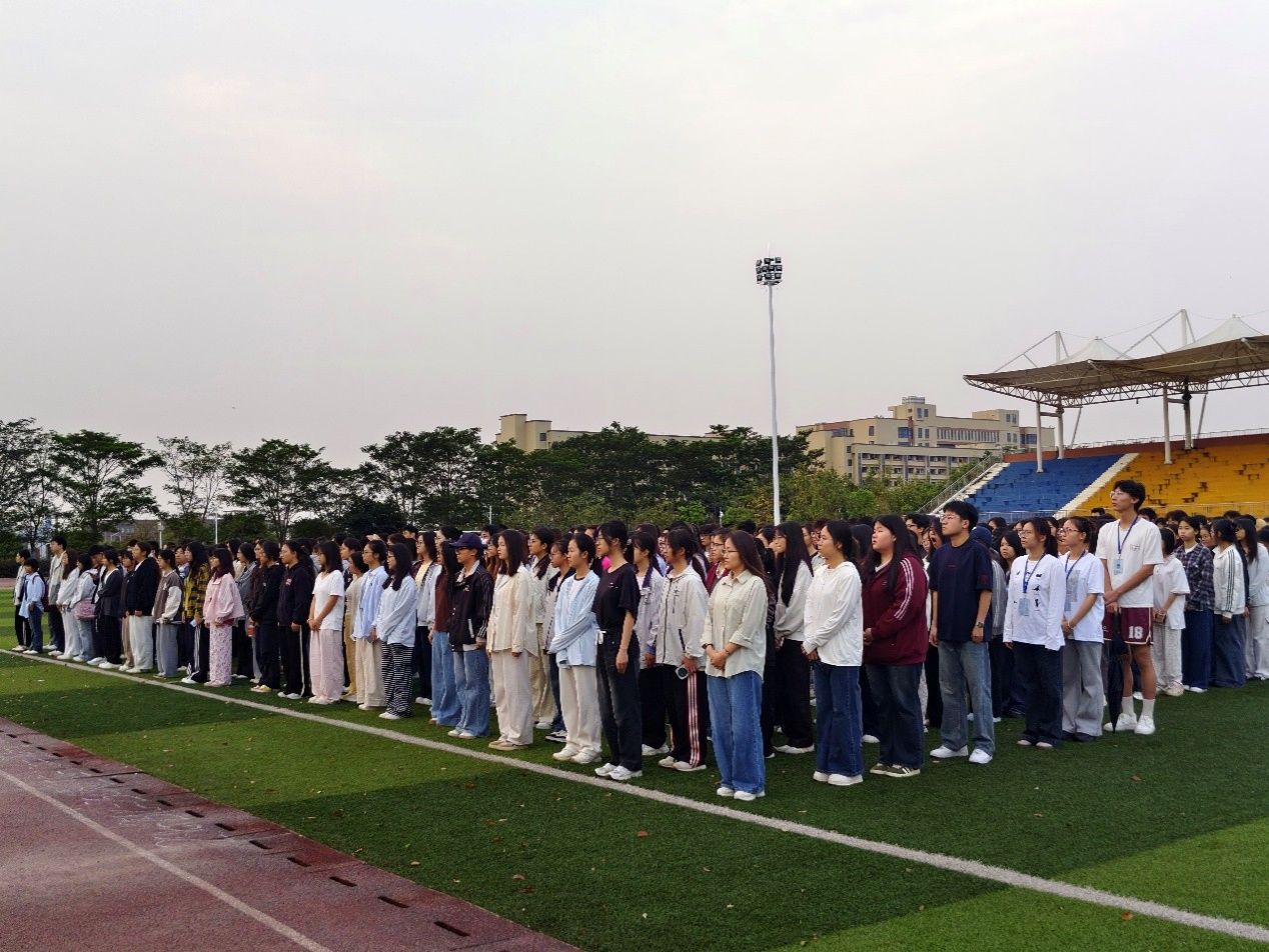 在松园田径场隆重举行升旗仪式。学院辅导员、兼职辅导员及全体学生整齐列队、精神饱满,共同参与并见证这一庄严神圣的时刻。