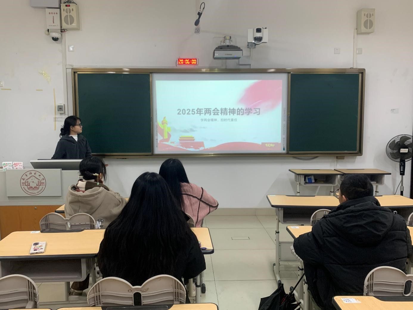 学生第二党支部23级党小组于2025年3月26日于武鸣校区1号教学楼105教室开展了“学两会精神,担时代重任”的主题党课学习。本次党课学习由23级党小组的姚凤娟同志主持,学生第二党支部23级党小组全体党员参与。