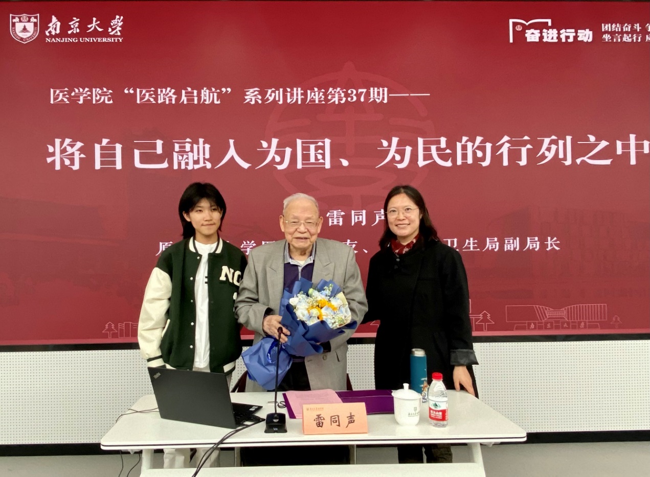 2024116日,南京大学医学院“医路启航”系列第37期讲座在鼓楼校区医学院基础医学科研中心报告厅成功举办,此次讲座荣幸邀请到原国立中央大学医学院校友、原南京市卫生局副局长,南京大学医学院校友会名誉会长雷同声先生,为2024级全体本科生带来了一场题为“将自己融入为国、为民的行列之中”的精彩报告。医学院党委副书记、关心下一代工作委员会副主任王阿妮、关心下一代工作委员会副主任宋小苏以及相关老师出席了此次活动。报告会由王阿妮主持。
