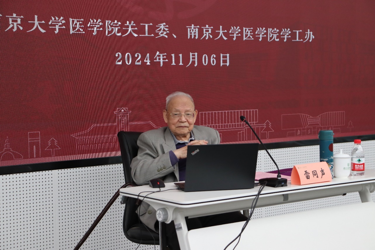 讲座中,雷老回顾了南京大学医学院的历史沿革,他指出,南大医学院有着光荣的报国传统,在解放战争和抗美援朝时期,医学院的师生们积极响应国家号召,投身各项医疗救助工作,充分展现了爱国爱民、医者仁心的崇高精神。雷老引用古训,告诫同学们要以仁爱之心从医,牢记初心,摒弃私心,真正做到为人民服务。