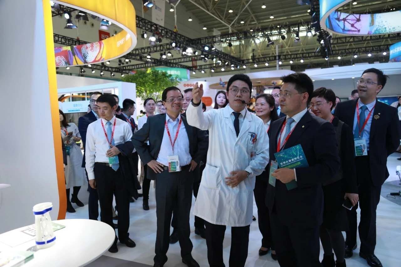 当天下午,泰康保险集团副总裁兼泰康健投首席执行官刘挺军、泰康仙林鼓楼医院院长李治平一行陪同出席大会的嘉宾参观医院所在展区。