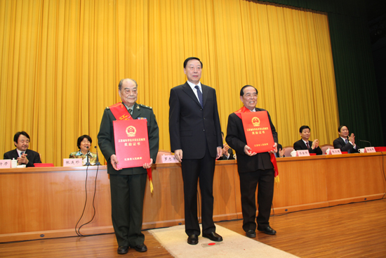 2月22日,在江苏省科学技术奖励大会上,中国工程院院士、南京总医院副院长黎介寿荣获江苏省科学技术突出贡献奖。江苏省委书记、省人大常委会主任罗志 军,省委副书记、省长李学勇,省政协主席张连珍出席大会,罗志军为黎介寿院士颁奖。该奖项是江苏省授予科技工作者的最高荣誉,今年首次授予医学工作者,黎 介寿院士是军区和江苏省医学科技战线获此殊荣的第一人。
