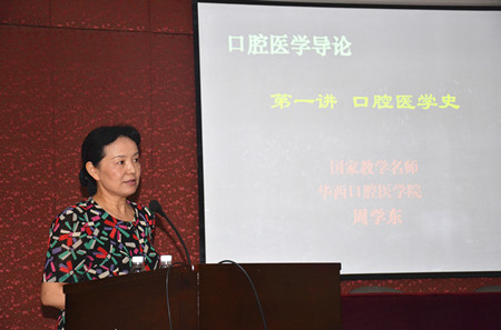 6月11日,四川大学党委副书记、华西口腔医学院(口腔医院)院长、教育部高等学校口腔医学专业教学指导委员会主任、国家级教学名师周学东教授应邀来我院举行《口腔医学史》专题授课。南京大学口腔医学院七年制本硕连读生、三年制硕士研究生以及部分博士生、青年教师100余人聆听了周学东教授的精彩演讲。周学东教授授课内容丰富、语言生动幽默,现场爆发出阵阵热烈的掌声。