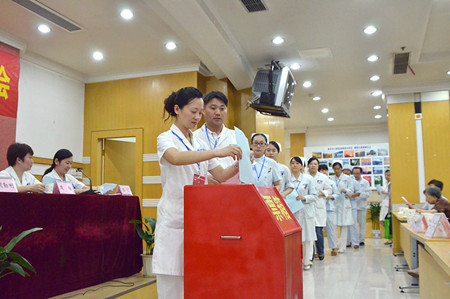 7月24日下午,我院在15楼报告厅召开新一届党委、纪委换届选举工作大会。南京市卫生局张向平副巡视员、组织宣传处尚文甦副处长,胡勤刚院长、王磊书记等院领导及共产党员近300人出席会议。