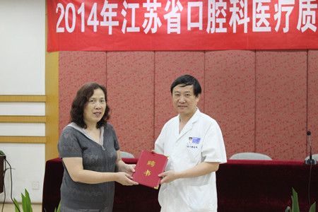 江苏省医院协会医疗质控管理办公室徐明娜主任宣读调整江苏省口腔科质控中心成员批文并颁发证书。江苏省口腔科医疗质量控制中心主任、南京大学医学院附属口腔医院院长胡勤刚教授通报了上一届江苏省口腔科质控工作情况,并对下一步工作进行了部署。