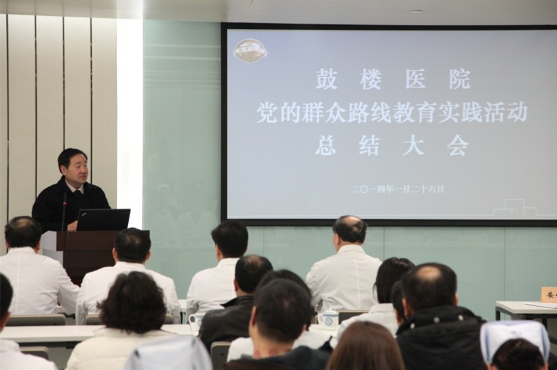 丁院长从七个方面回顾了本次教育实践活动的开展情况及特点:一是统筹安排,及时动员部署;二是做好“四个一”,深入推进学习教育;三是坚持“六个结合”,多形式、多渠道征求意见;四是对照查找,认真剖析问题根源;五是认真准备,开好专题民主生活会;六是突出实效,开好7场专题组织生活会;七是认真整改,建章立制。同时,丁院长还总结了教育实践活动开展以来的主要收获及下一步工作打算。通过本次教育实践活动,全院上下工作作风更加扎实、团结协作氛围更加浓厚、医院可持续发展步伐更加稳健。在下一阶段的工作中,医院将继续把这次教育实践活动的成效与中心工作相结合,把转变“四风”,改善服务作为今后工作的落脚点,逐步建立长效机制。通过继续聚焦作风建设抓学习、促医改、强服务,以教育实践活动取得的成果为契机,以精细化管理为平台,争创全国百家优质医院,建设国内最好的人文医院!