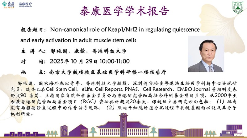 2025.10.29泰康医学学术报告- 邬振国教授:Non-canonical role of Keap1/Nrf2 in regulating quiescence and early activation in adult muscle stem cells