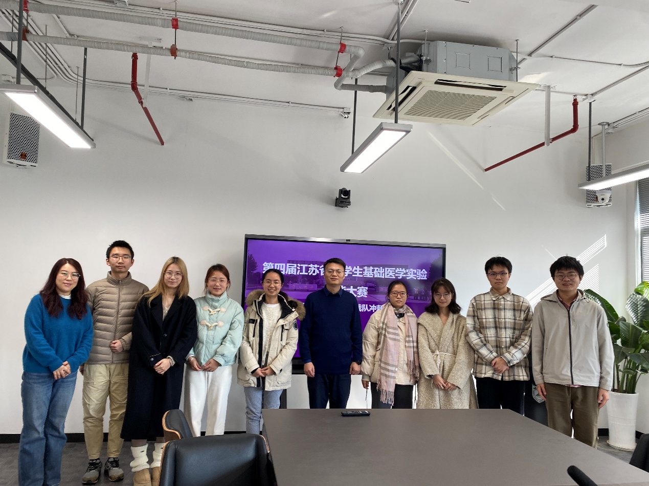 医学院秉持“以赛促学、以赛促教”的理念,全面落实学校“奋进行动”部署要求,自10月初启动备赛工作,经严格选拔,派出由郭禹彤、蒋诗语、马佳颖、王子健、朱柯睿、姚倩雯、涂欣悦、朱昱丞同学组成的两支队伍参赛。基础医学教学中心丁洁、徐力致、张露青、董平等教师全程精心指导,同学们系统复习理论知识,并多次前往仙林基础医学教学中心开展实操演练。吴锦慧副院长多次关心备赛进展,主持召开动员座谈会,倾听学生需求,为参赛团队提供坚实保障。
