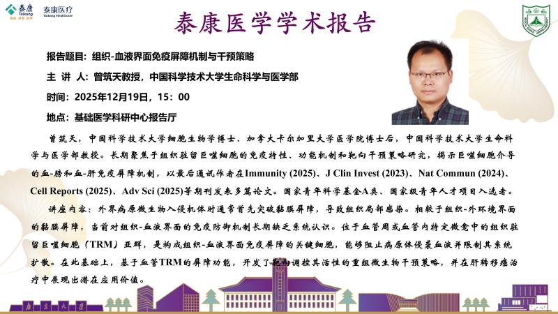 2025.12.19泰康医学学术报告-曾筑天教授:组织-血液界面免疫屏障机制与干预策略