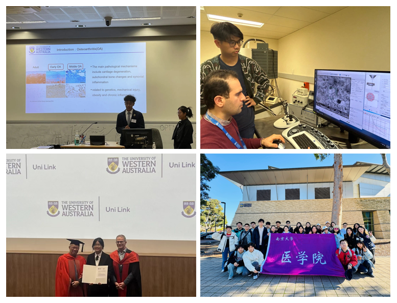 我院与澳大利亚西澳大学医学院、英国利兹大学医学院、牙学院等继续展开合作交流,2024年度选拔27名学院本科生赴澳参加南京大学-西澳大学医学生全球科考与科研训练项目,并取得圆满成功。此外,学院还与新加坡国立大学、马来西亚理工大学等海外院校建立联系。共邀请海外著名高校及科研机构的十多名知名学者、专家来院访问交流、进行学术报告,为师生提供与国际高水平专家面对面交流的机会。