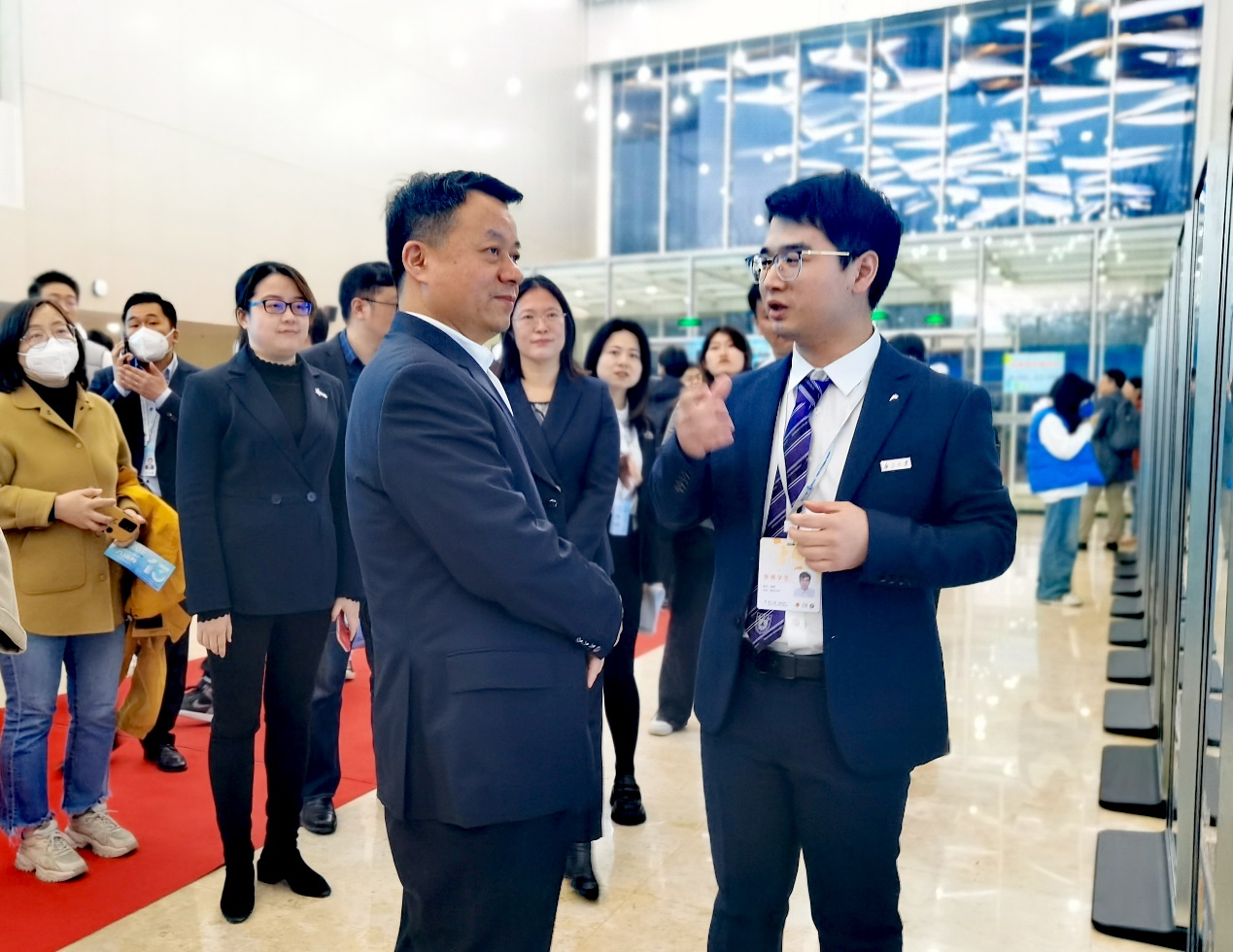向共青团中央书记处书记傅振邦介绍“颅内动脉瘤智慧管家项目”