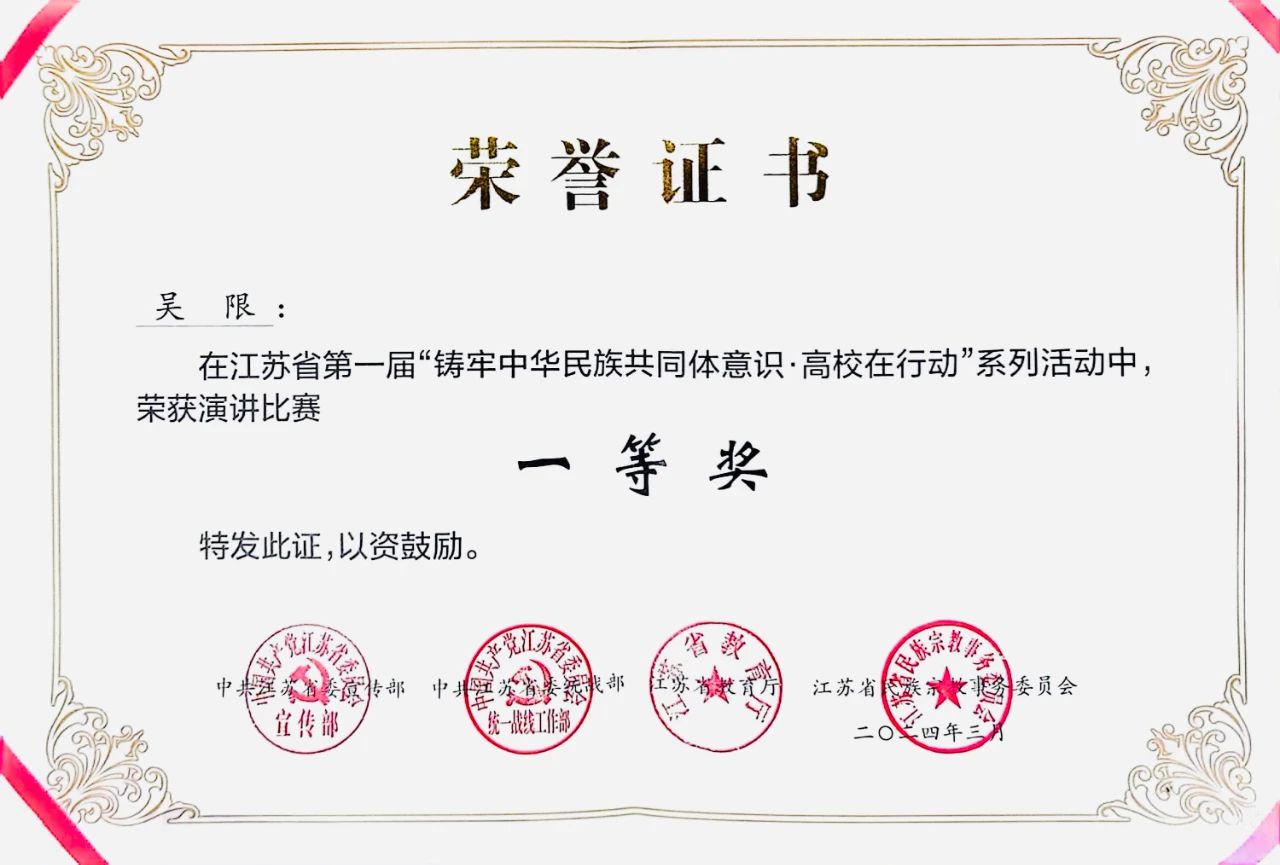 据悉,我院2020级本科生吴限作品《南大人扎根祖国边疆挥洒青春热血》获得“铸牢中华民族共同体意识演讲比赛”一等奖,该奖项全省共4人获奖。