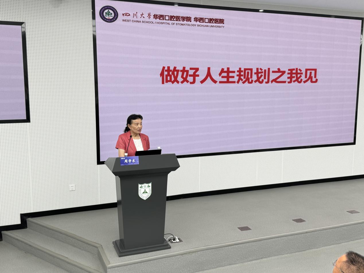 研究生学术论坛的首位嘉宾是四川大学华西口腔医院学术院长周学东教授,她以“做好人生规划之我见”为题,鼓励在座的同学,对个人的发展规划要有新的认知,要不断增加自己的知识储备、拓展视野、终身学习,围绕“健康中国”战略目标,促进自己成长为未来的医学科学家和临床研究者。周教授的讲座充满了人文关怀的温情,引起了在场师生的共鸣,最后她勉励同学:“求学路上,唯有努力,方可成功,创造最美丽的自己!”。