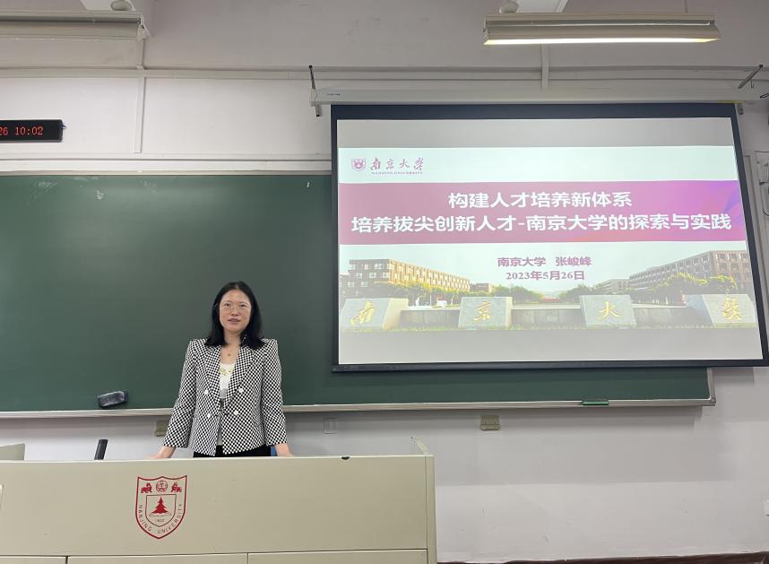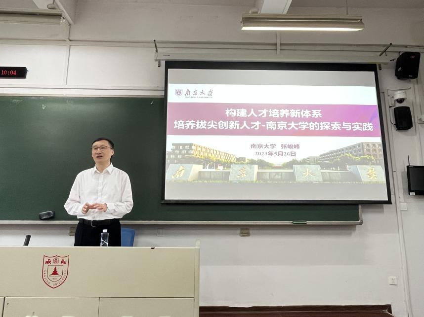 为全面贯彻党的二十大报告关于“坚持教育优先发展,全面提高人才自主培养质量,着力造就拔尖创新人才”的要求,深入开展学习贯彻习近平新时代中国特色社会主义思想主题教育,积极落实南京大学“奋进行动”方案,5月26日上午,南京大学党委常委、副校长、医学院院长张峻峰为医学院2021级本科生授课。张校长以“构建人才培养的新体系,培养医学拔尖创新人才-南京大学的探索与实践”为主题,紧扣时事热点,结合医学人文素养要求,介绍了南京大学人才培养体系和医学院培养拔尖创新人才之间的关联,并对同学们提出了殷切期望。医学院党委副书记王阿妮老师出席并主持。