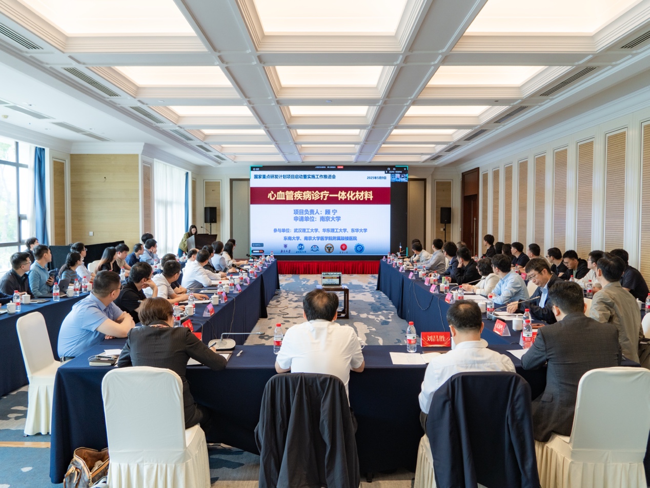 2025年5月9日,由中国科学院院士、南京大学医学院顾宁教授牵头主持,联合武汉理工大学、东华大学、华东理工大学、东南大学及南京大学医学院附属鼓楼医院共同承担的,国家重点研发计划“工程科学与综合交叉”重点专项“心血管疾病诊疗一体化材料”项目启动会暨实施工作推进会在南京顺利召开。此次会议汇聚了来自全国多所高校、科研机构及医疗机构的专家学者,通过线上线下结合的方式,深入探讨了项目的实施方案和取得的阶段性进展。