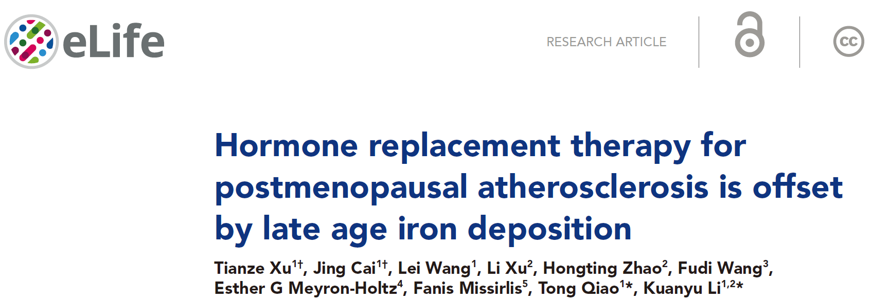 2023年8月10日,南京大学医学院教授李宽钰和附属鼓楼医院血管外科主任乔彤团队合作在eLife杂志发表了题为“Hormone replacement therapy for postmenopausal atherosclerosis is offset by late age iron deposition”的论文,该研究揭示衰老相关铁累积可能是绝经后期动脉粥样硬化患者难以从HRT中获益的重要原因。本研究发表日eLife附上了哈佛医学院麻省总医院心脏病专家Rajeev Malhotra的评述(Insight),高度评价了本研究成果:This study provides strong evidence that iron accumulation shifts estradiol from a drug that reduces atherosclerosis to a drug that promotes its progression.本研究得到了南华大学王福俤教授,以色列理工大学Esther Meyron教授,墨西哥Cinvestav的Fanis Missirlis教授和美国NIH的张德良博士的帮助,得到国家自然科学基金(#32271221, 81870348)的资助。