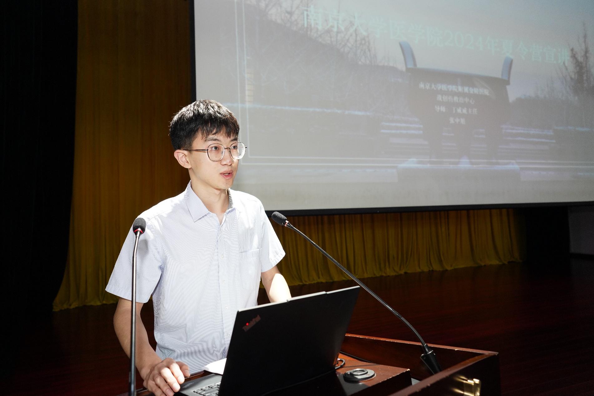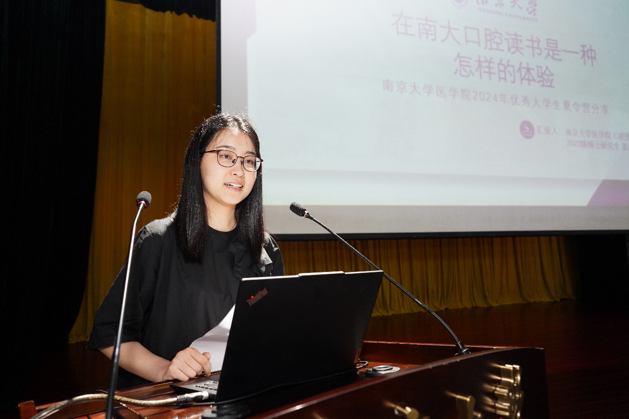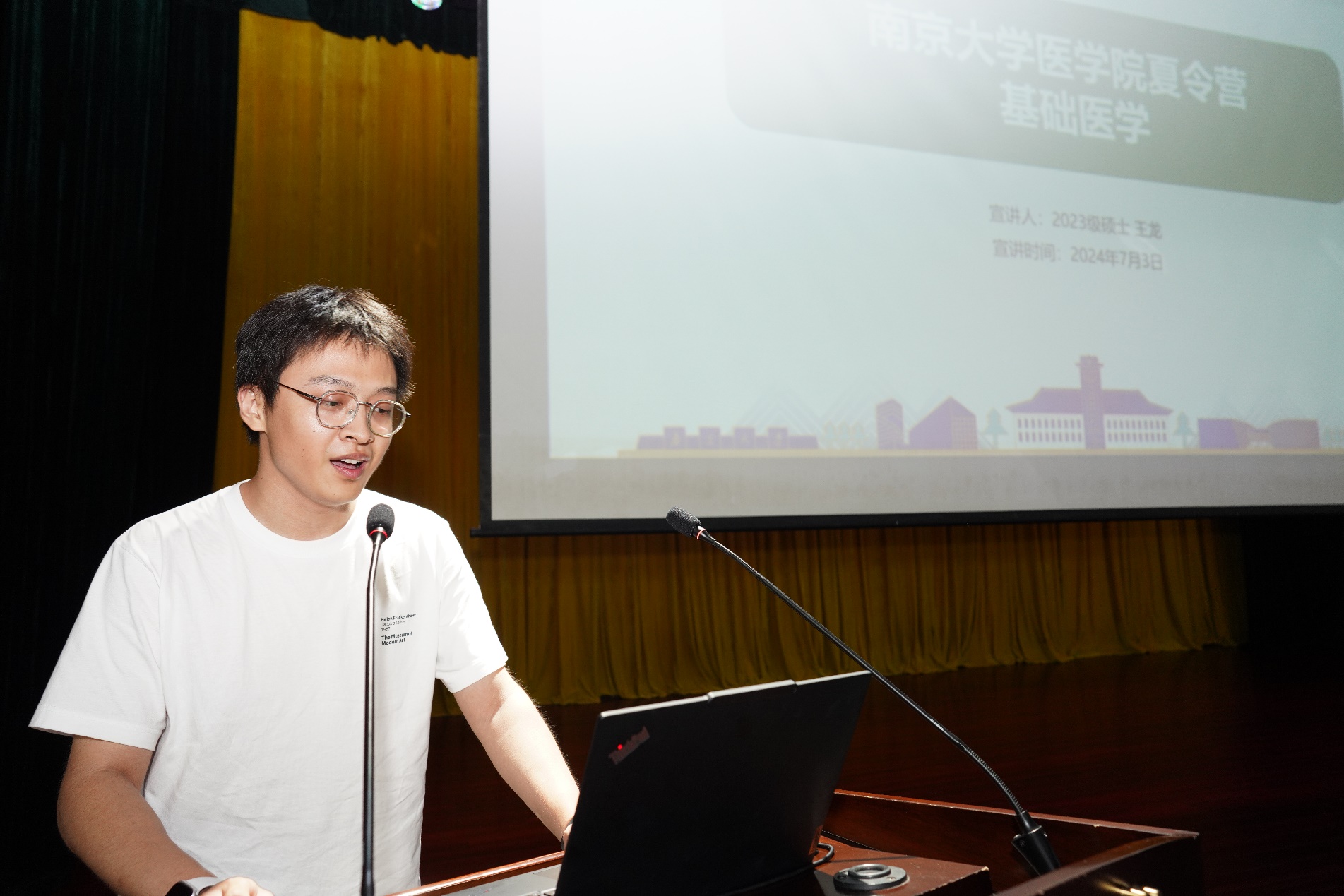 三位在读优秀学生代表张中旭、姜成乐、王龙跟营员们分享了自己在南京大学医学院就读的点点滴滴,通过生动形象的学习和生活情景让营员们感受到医学院大家庭的亲切和温暖。