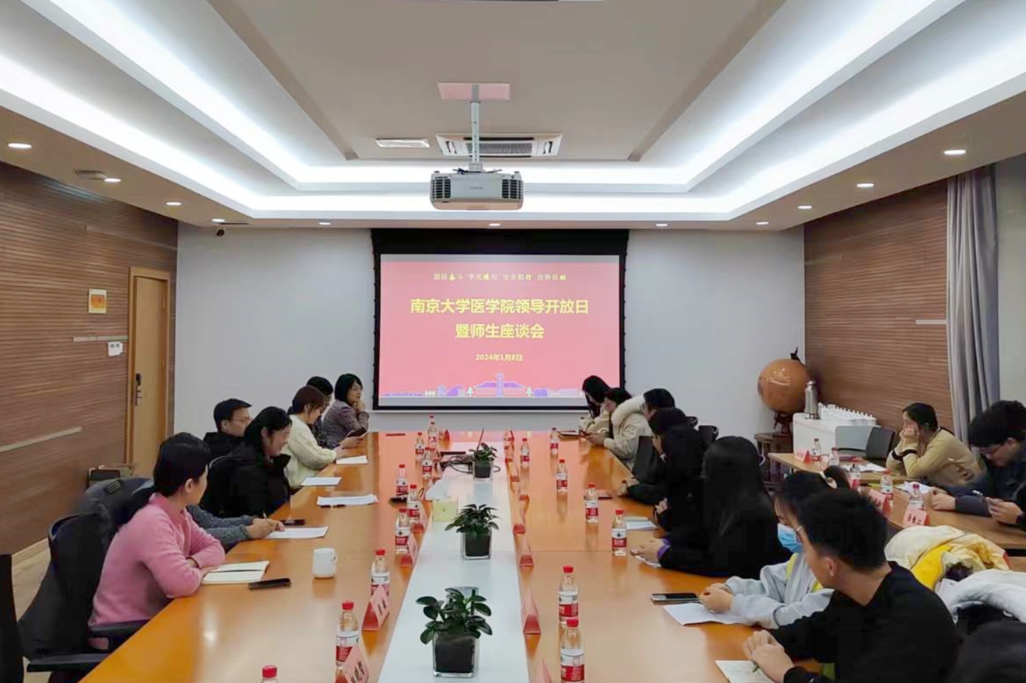 1月8日下午,医学院领导开放日暨师生座谈会在鼓楼校区东南楼举办。医学院党委书记沈苏南、党委副书记王阿妮、副院长王婷婷、研究生德育导师、辅导员以及学生代表共计三十余人参加餐叙,座谈由党委副书记王阿妮主持。