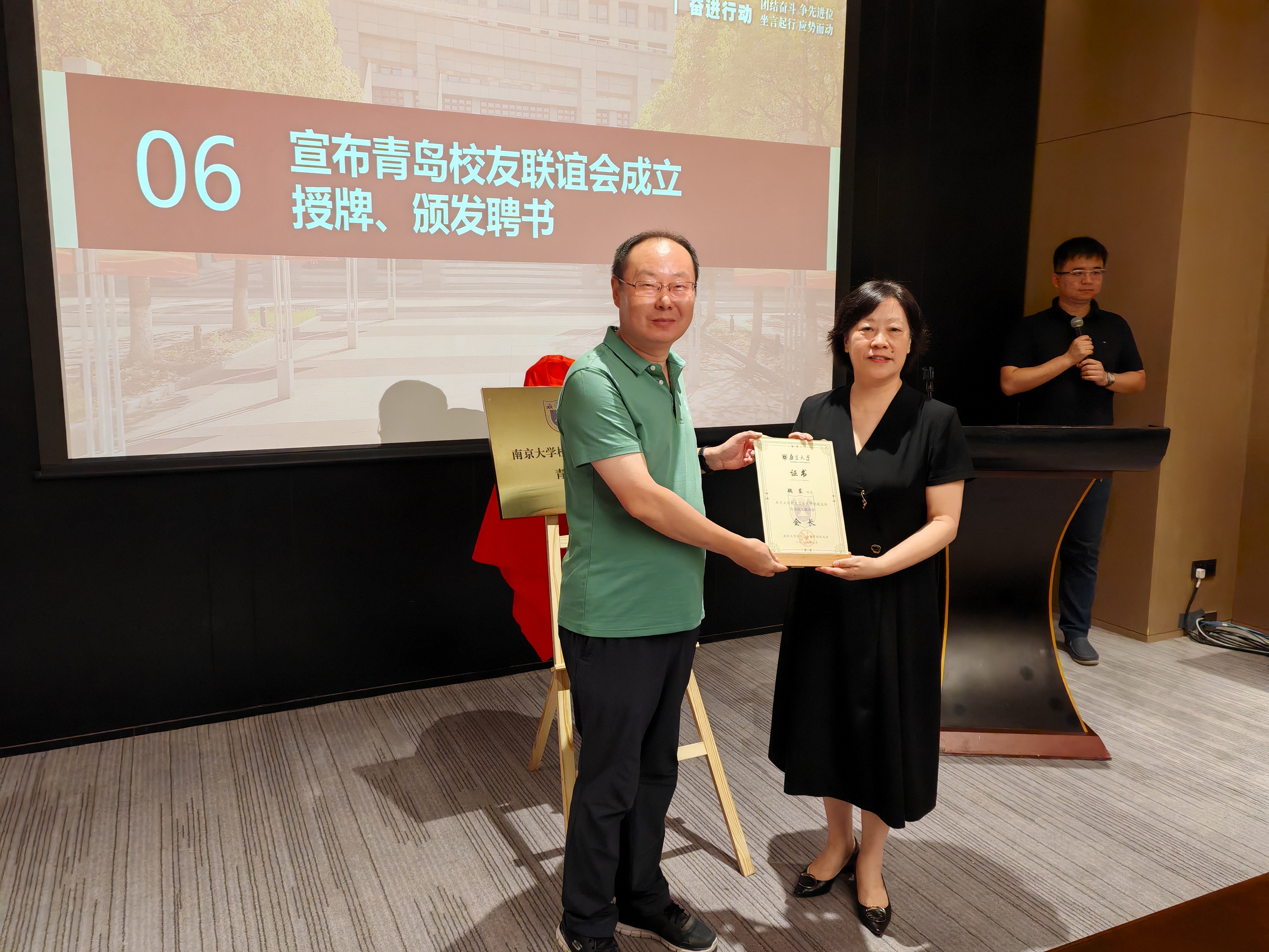新当选的名誉会长、会长、副会长等先后发表感言。他们纷纷表示倍感荣幸,将依托母校和众多校友的力量,尽心竭力充分发挥社会价值,服务校友、回报母校,造福百姓,扩大南京大学在青岛地区的影响力。