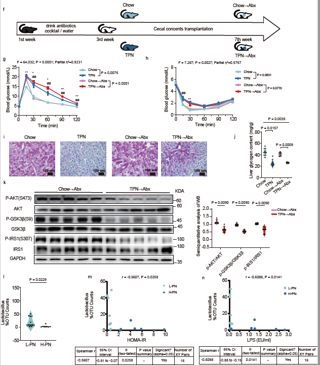 Fig.2 Gut microbiome is associated with glucose metabolism in TPN mouse model.